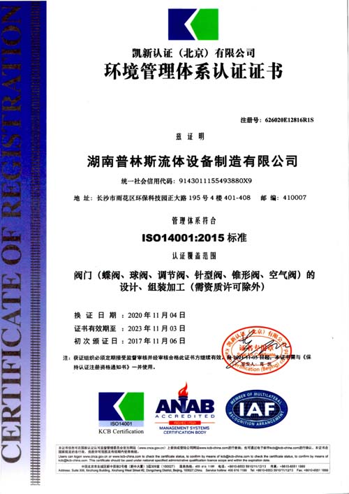 環(huán)境管理體系認(rèn)證證書